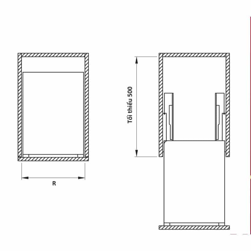 - Chiều sâu lọt lòng (S): Tối thiểu 500
