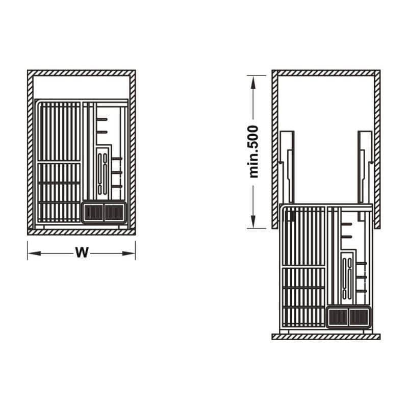 - Chiều sâu lọt lòng tủ tối thiểu: 500mm