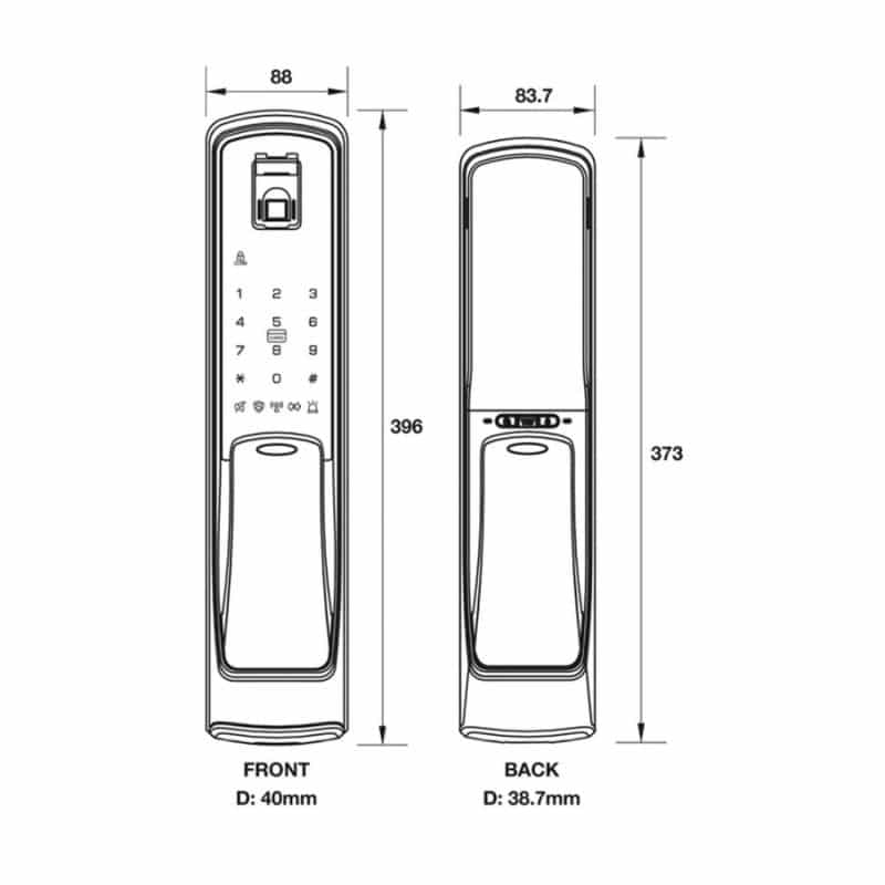 - Chức năng khóa kép: khi chức năng khóa kép được kích hoạt, cửa không thể mở được từ bên ngoài, ngay cả với thẻ đã đăng ký, mật mã hoặc dấu vân tay ( chỉ mờ được bằng chìa cơ )